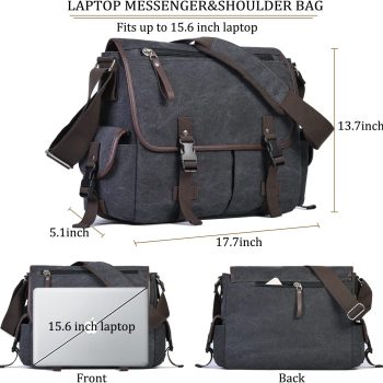 - This messenger bag is made of thick durable canvas, PU leather for long-term use.which it is heavy duty.It can protect your laptop and books entirely.