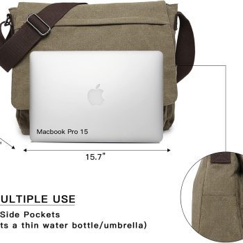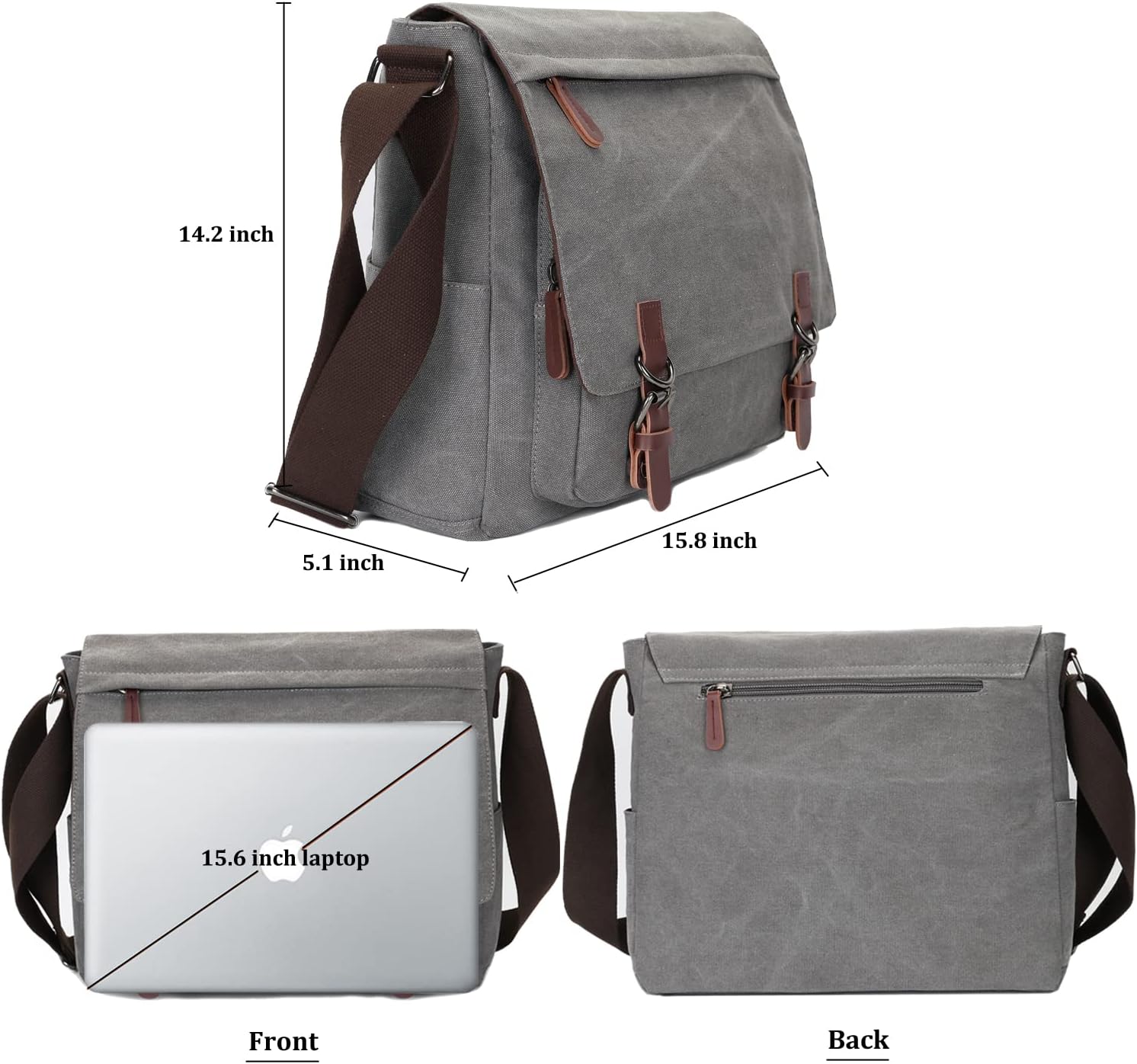 Canvas Messenger Bag for Men Women,Travel Satchel Shoulder bag 15.6 Inch Laptop Bag briefcase Business