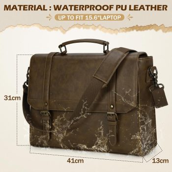 - Multi-compartments: Large capacity with various pockets that fits all of your stuffs you need. 1 zipper pocket on the flap,1 large zipper pocket with 4 card slots, 3 pen sleeves and 1 open pocket,2 side pockets for umbrella,1 back zipper pocket with leather clasp.Internal access to 1 main zipper compartment, 1 padded laptop compartment fits 15.6 inch laptop and 1 zipper pocket keep things organized.