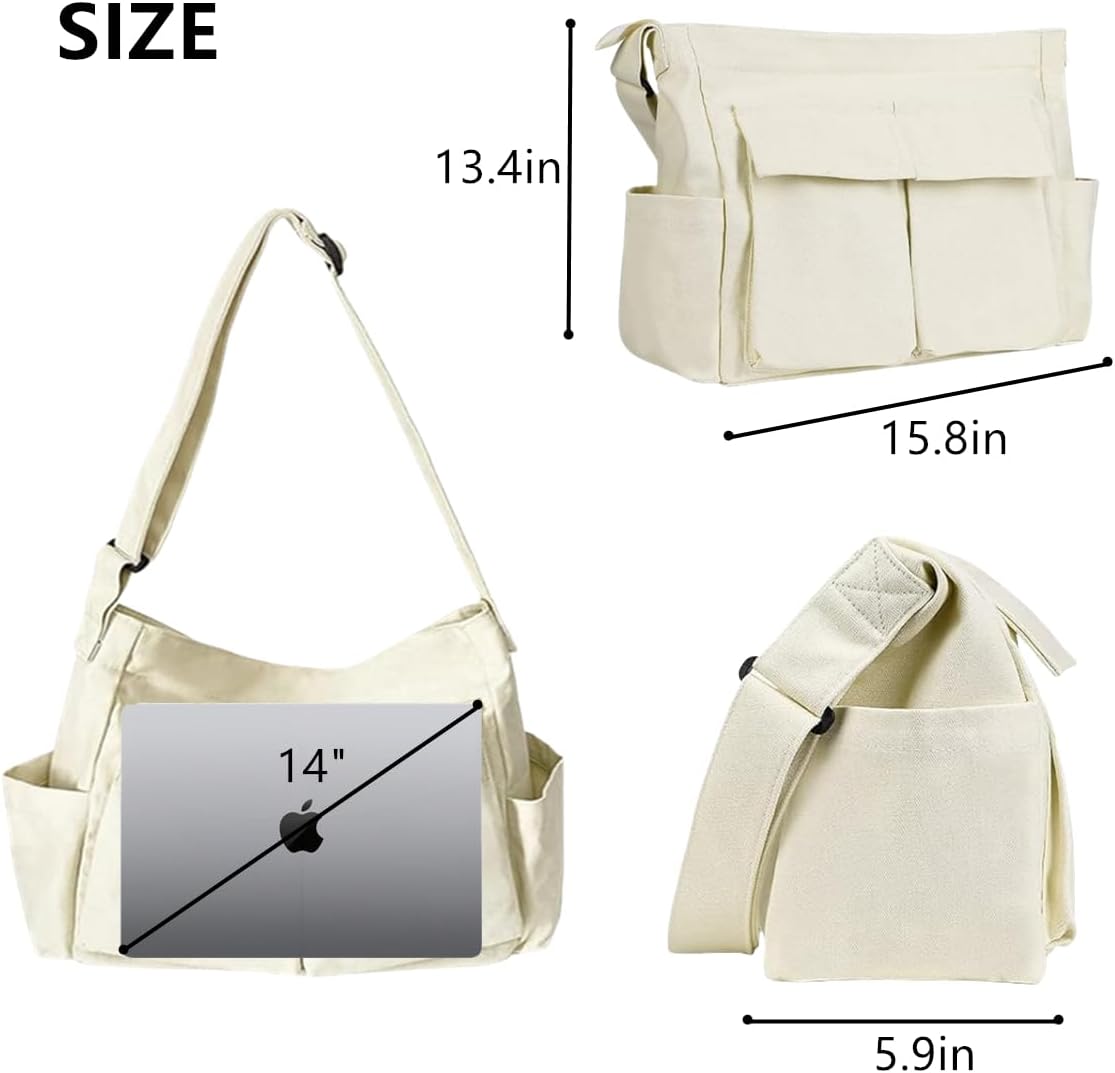 Canvas Messenger Bag Large Crossbody Bags with Multiple Pockets,School Vintage Shoulder Laptop Bag for Women and Men