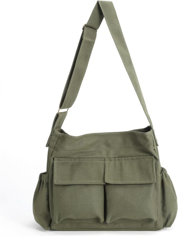 Canvas Messenger Bag Large Hobo Crossbody Bag with Multiple Pockets For Women And Men Shoulder Tote Bag For Travel