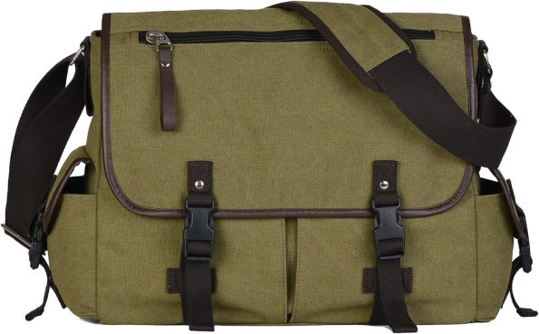 - This messenger bag is made of thick durable canvas and PU leather for long-term use which it is heavy duty.It can protect your laptop and books entirely.