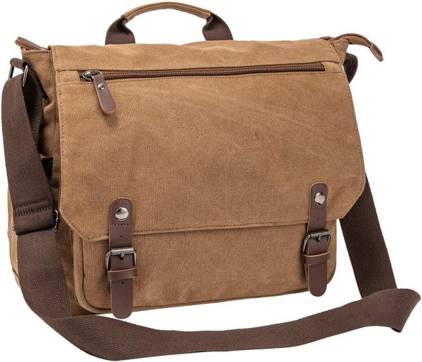 - Material: Soft and durable Washed Canvas with Leather Decoration. The messenger bag is made of a very durable looking canvas material on the outside and a softer, more luxurious material inside the main compartment.