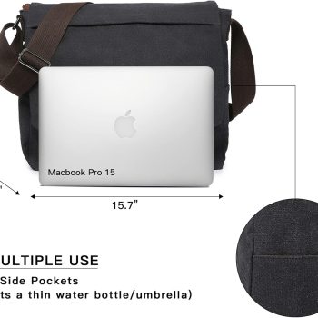 - SIZE : 15″(L)x12.6″(H)x4.7″(W). Perfect size easy to carry 15″ MacBook Pro / Air, 14-inch laptops , A4 file, iPad, kindle, cellphone, wallet, books and other small stuffs. Usage: commute, weekend, field, travel or everyday use.