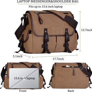 Vintage Genuine Leather Waxed Canvas Briefcase Large Satchel Shoulder Bag Rugged Computer 15.6″ Laptop Bag